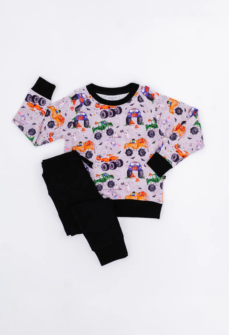 The Sleepy Sloth Monster Rally Monster Trucks Halloween Two Piece Jogger Set
